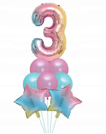- 1 szt - balon foliowy cyfra 3 tęczowa 40 cm
