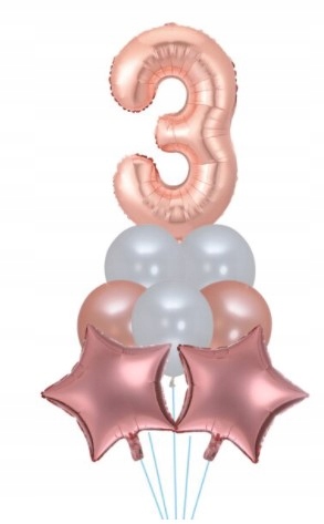 Zestaw balonów trzecie urodziny rose gold gwiazda