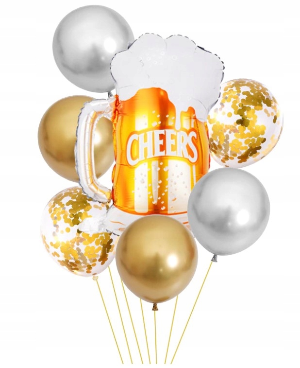 Zestaw balonów urodziny kufel piwa konfetti złote