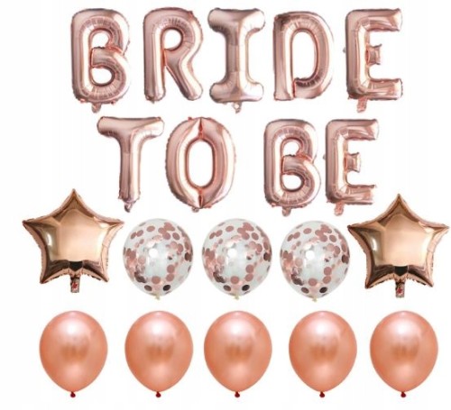 ZESTAW BALONÓW NA WIECZÓR PANIEŃSKI w kolorze ROSE GOLD. Nieodłączny element każdego wieczoru panieńskiego.