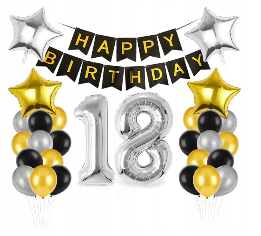 Zestaw balonów złote czarne osiemnastka 18 hel