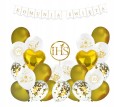 ZESTAW BALONÓW GUMOWYCH Z KONFETTI w kolorze BIAŁYM I ZŁOTYM.