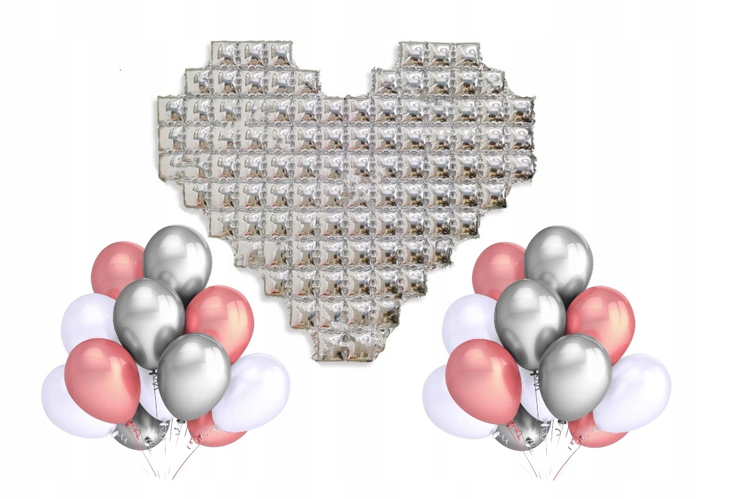 Zestaw balony białe srebrne rose gold tło serce
