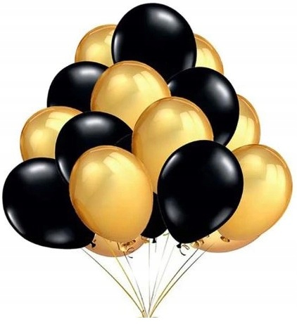 - balony lateksowe metaliczne czarne ok. 30 cm - 12 sztuk