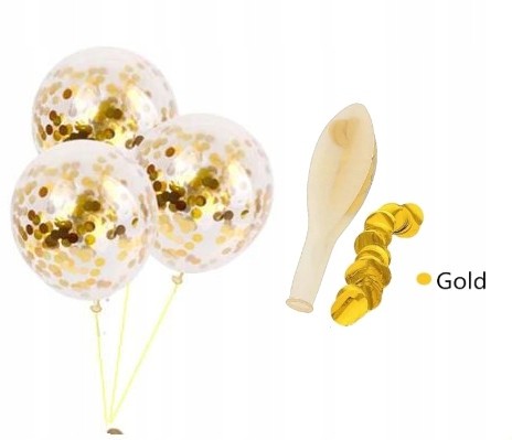 ZESTAW BALONÓW GUMOWYCH Z KONFETTI w kolorze ZŁOTYM. Nieodłączny element każdego urodzinowego przyjęcia.Rewelacyjnie sprawdzi się również jako element dekoracji wielu jubileuszowych uroczystości, PANIEŃSKI, URODZINY, ŚLUBY , WESELA DO DEKORACJI SAL, SAMOCHODÓW NA WALENTYNKI ITD...