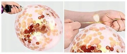 W naszych balonach konfetti jest już umieszczone w środku, więc nie trudzisz się uzupełniając go:)