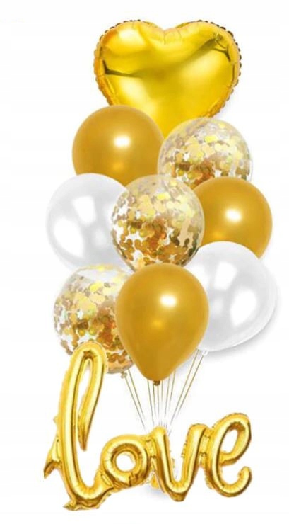 Zestaw balony konfetti ZŁOTE love 30 cm urodziny