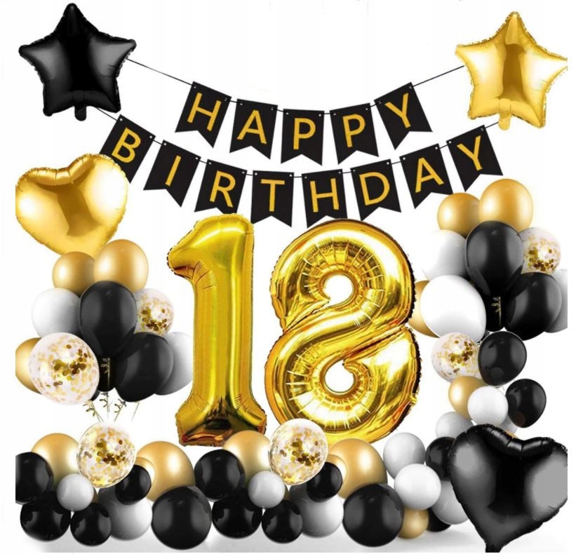 Zestaw balony osiemnastka złote 18 urodziny na hel