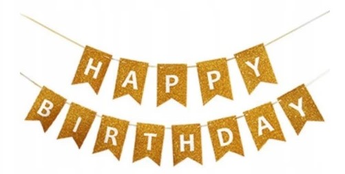 - Baner urodzinowy w kolorze złotym brokatowym z napisem długość baneru 270 cm