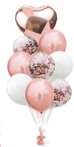 ZESTAW BALONÓW LATEKSOWYCH Z KONFETTI w kolorze ROSE GOLD.