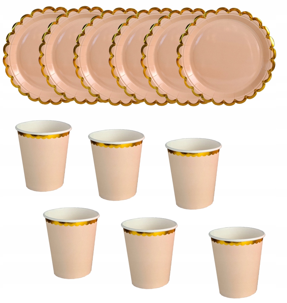 Zestaw kubki talerzyki brzoskwiniowo złote urodzin