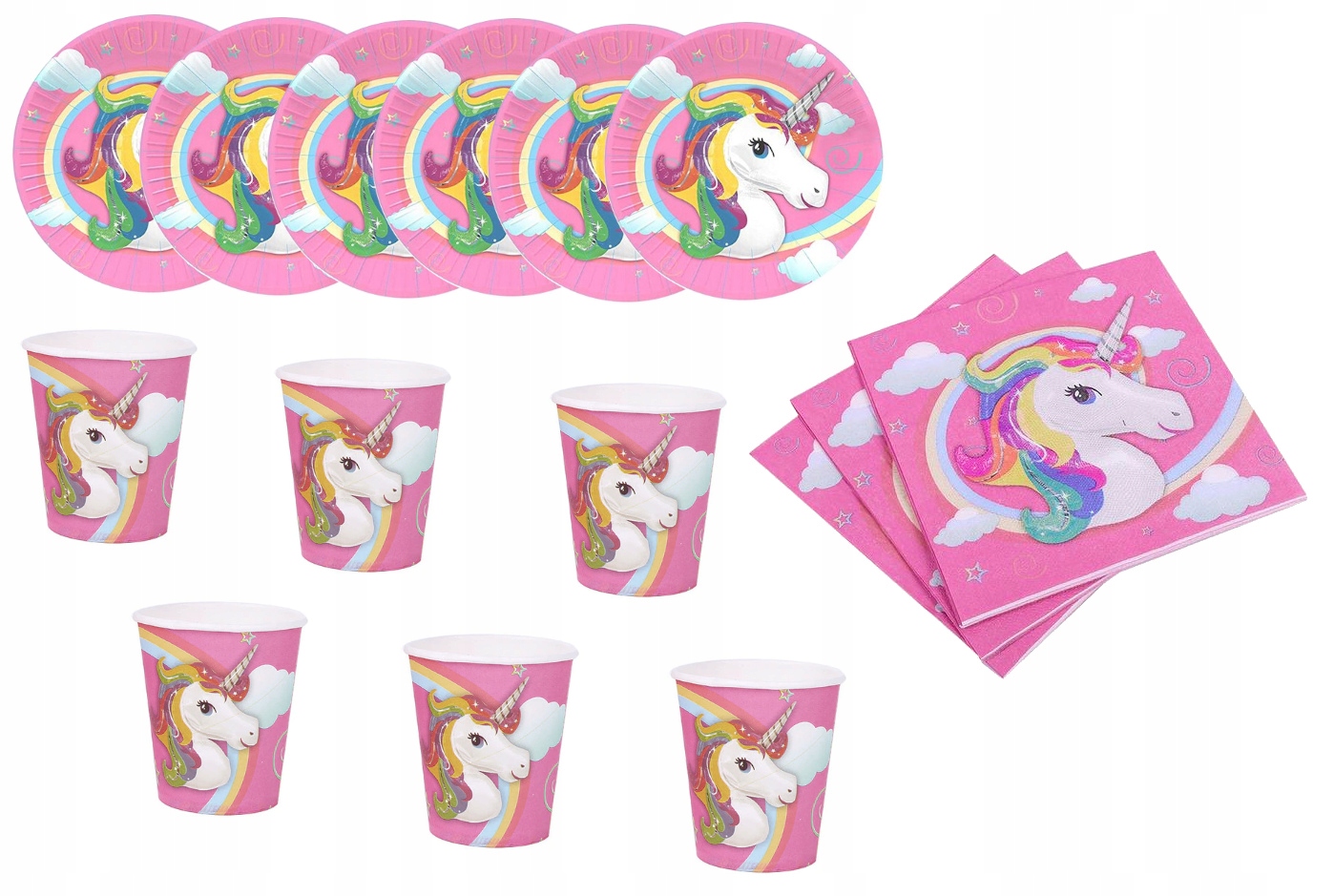Zestaw kubki talerzyki serwetki jednorożec urodzin