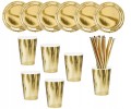 Zestaw kubki talerzyki urodziny słomki złote papierowe sylwester metaliczne