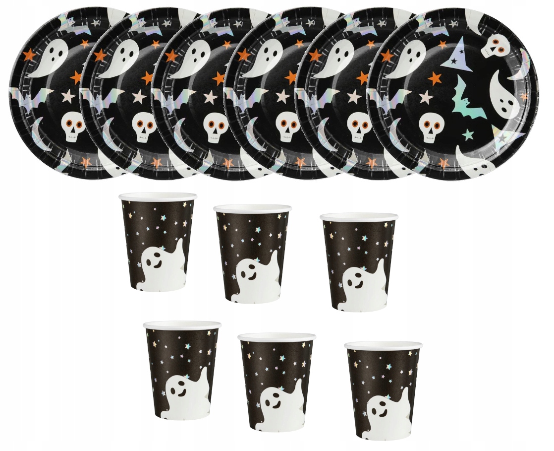 Zestaw na halloween kubeczki talerzyki papierowe duch nietoperz czaszka