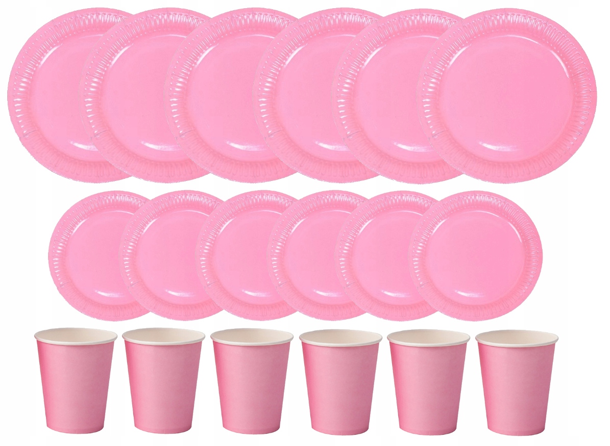 Zestaw urodzinowy kubki talerzyki 18 cm 23 cm róż