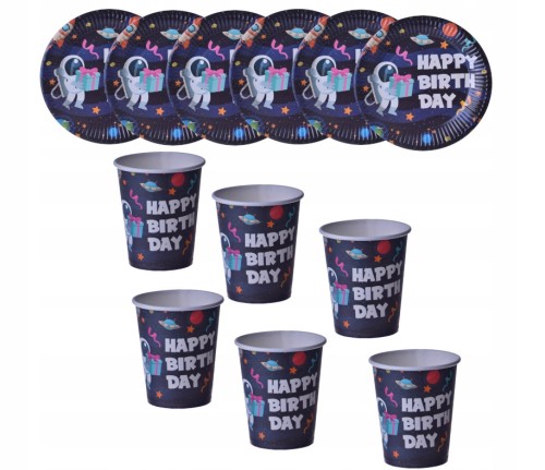 Zestaw urodzinowy kubki talerzyki kosmos galaktyka