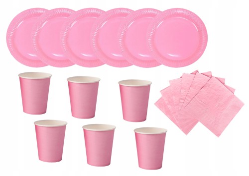 Zestaw urodzinowy kubki talerzyki serwetki różowy