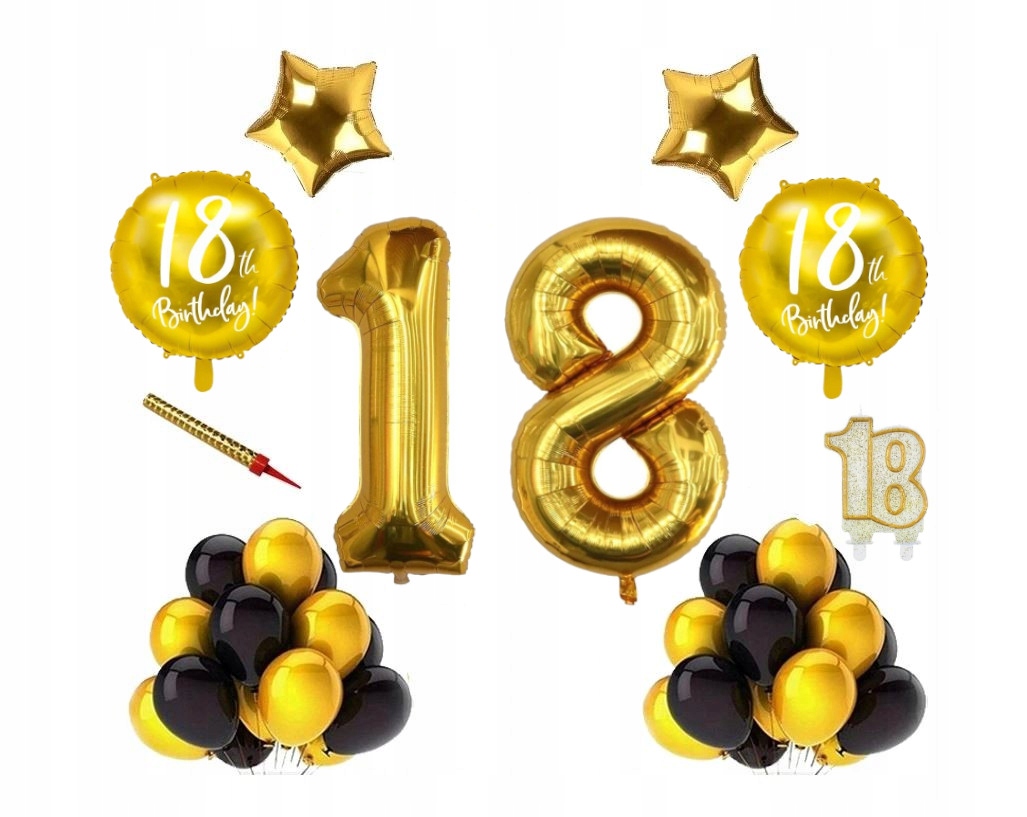 Zestaw balonów dekoracyjnych na 18urodziny.