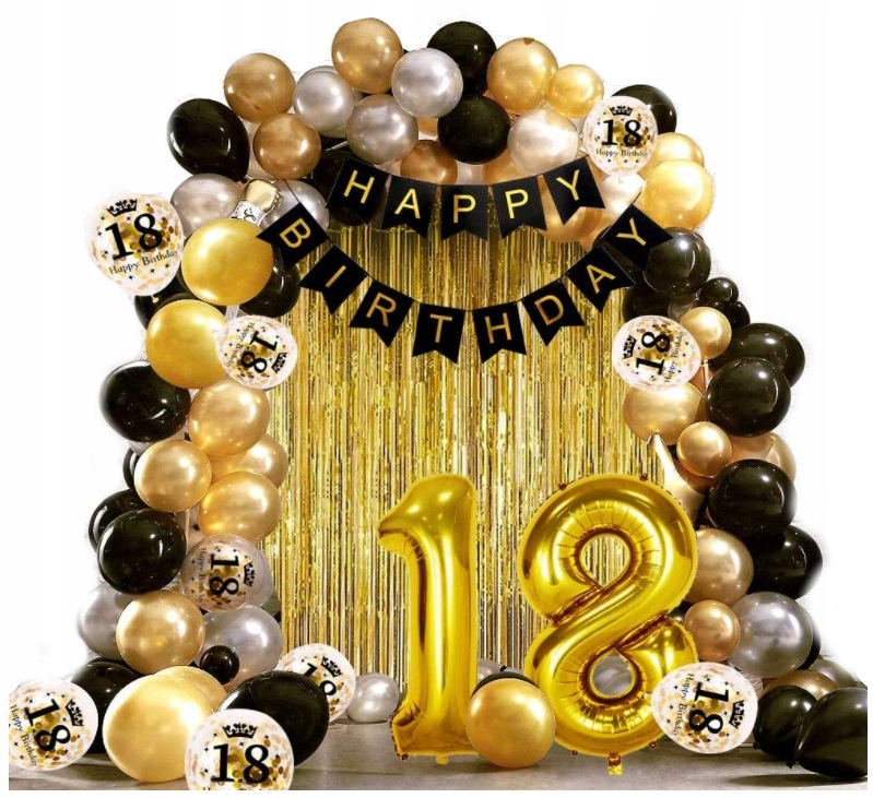 Zestaw złote czarne balony 18 urodziny osiemnastka