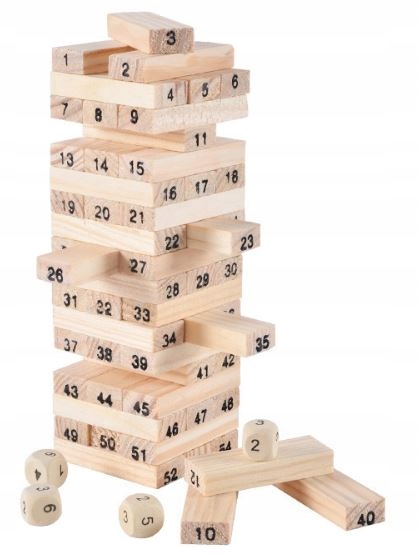 - Wspaniała rozrywka dla całej rodziny ! Jenga to gra zręcznościowo-umysłowa. Świetny sposób na spędzanie wolnego czasu. Emocje rosną z każdym kolejnym piętrem wieży, które zwiększa poziom trudności.