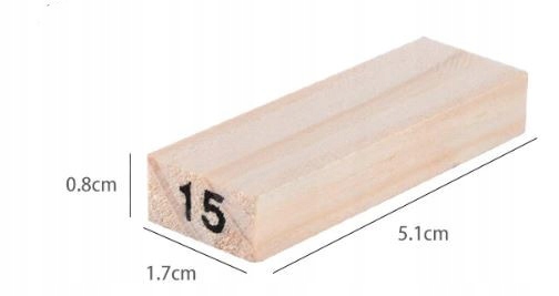 - Wymiary przykładowego klocka do gry ok. 5,1 cm x 1,7 cm x 0,8 cm.