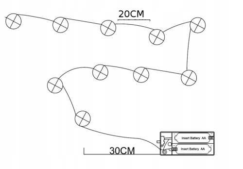 - LAMPKI ZASILANE NA BATERIE 2xAA (baterii nie ma w zestawie)