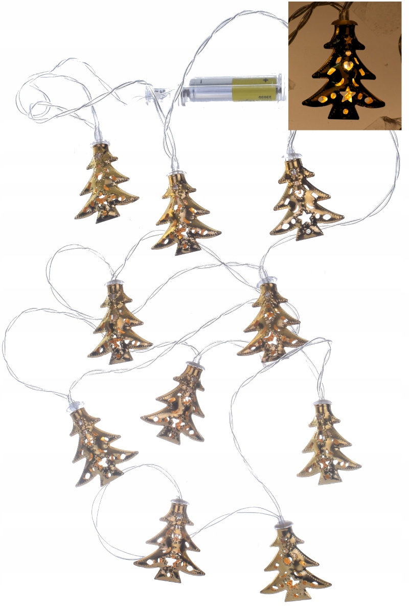 - lampki typu LED 10 szt metalowe choinki (4,5 cm wysokości - 4 cm szerokości - 1 cm grubości)
