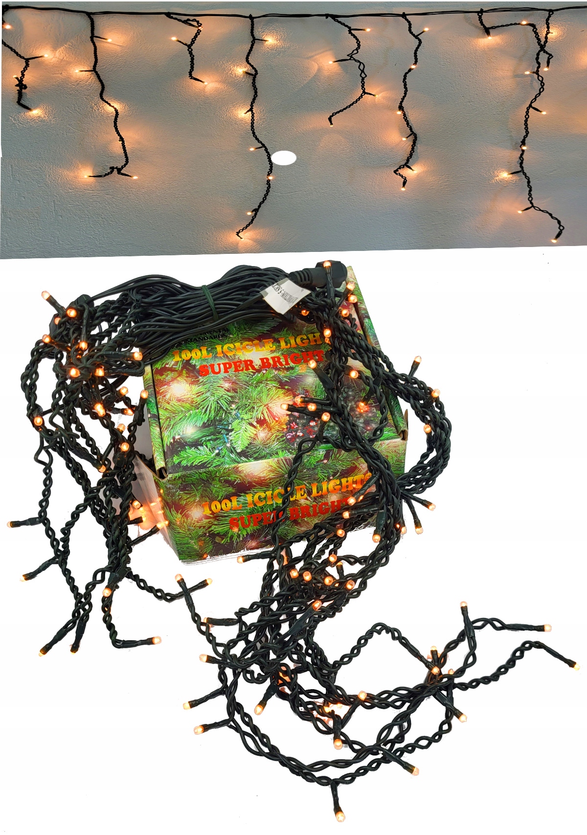 lampki CHOINKOWE 100 CIEPŁE sople stałe kurtyna