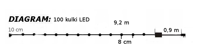 -długość kabla świecąca 9,2m + 0,9m długość kabla zasilającego + 0,1m kabla łączącego
