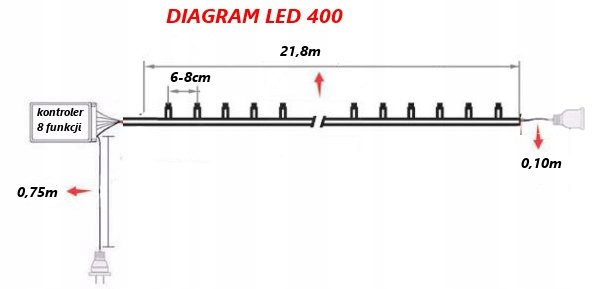 - długość 21,8m +0,10m wtyczki do łączenia + 0,75m kabla zasilającego