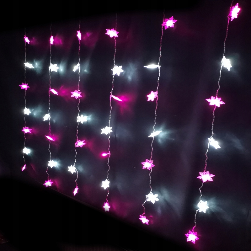 lampki CHOINKOWE LED biały różowy kurtyna sople