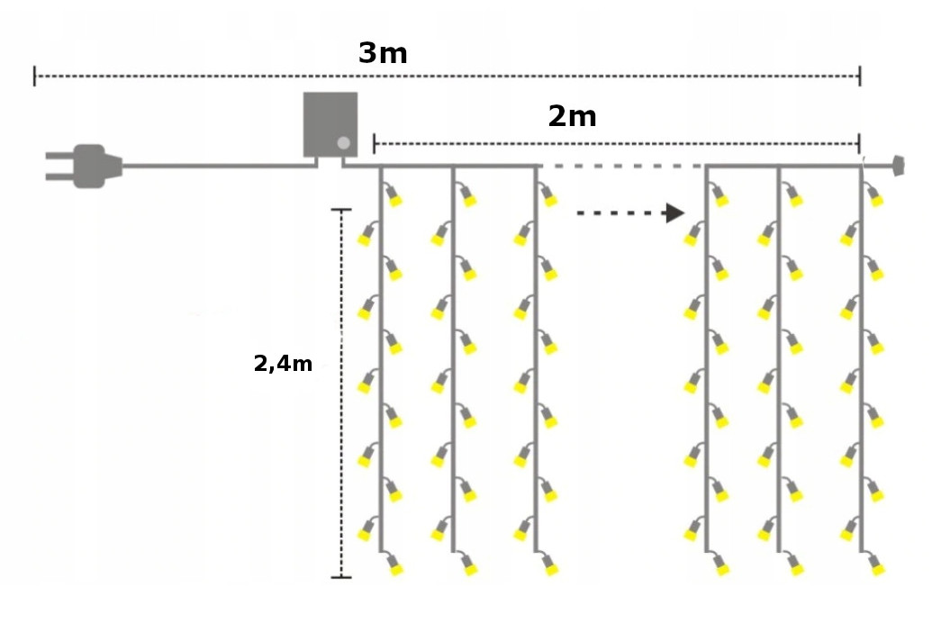- długość 2,4m szerokość 2m + 1m kabla zasilającego / łączącego,