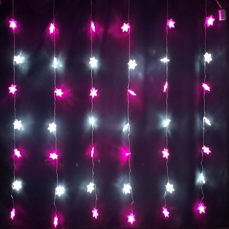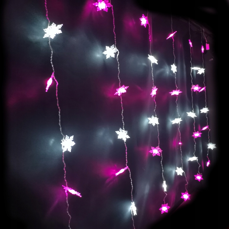 lampki LED biały różowy kurtyna sople płatki śnieg