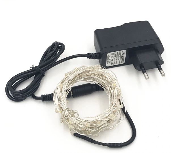 zastosowanie zasilacza eliminuje problem z rozładowaniem baterii i nie ogranicza czasu pracy lampek, cały zestaw liczy dwieście punktów świetlnych i ma długość dwudziestujeden metrów z kablem zasilającym.
