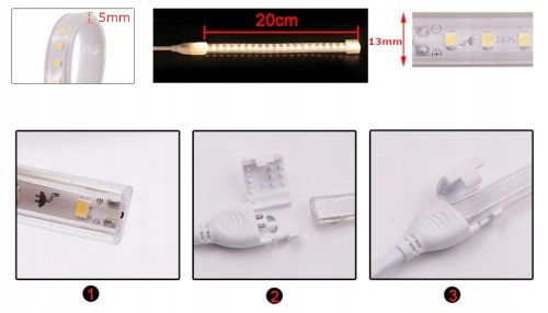 wąż TAŚMA LED 230V BEZ ZASILACZA wodoodporna 20cm