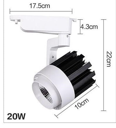 Reflektor Szynowy 1-fazowy LED COB o mocy 20W odpowiada tradycyjnej żarówce o mocy ok 160W.