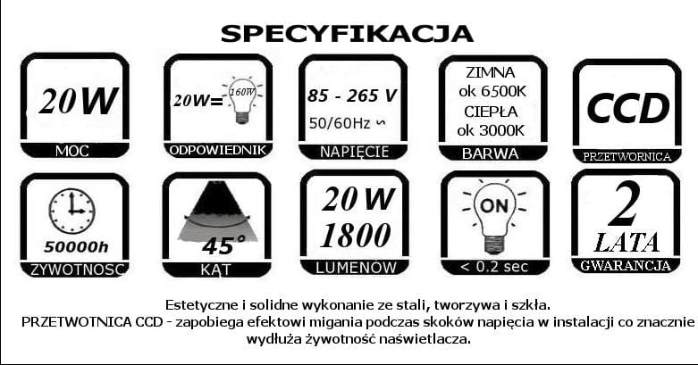 NA TEJ AUKCJI KUPUJESZ barwę światła zimną 6500K O MOCY 20W ciepła dostępna na innej aukcji