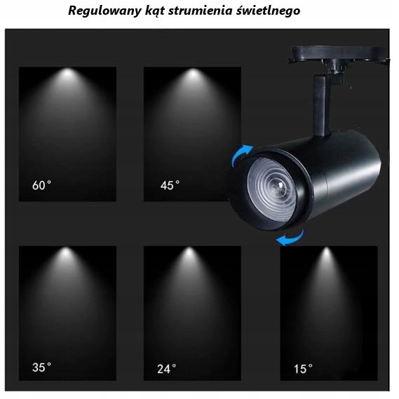 - Kąt padania światła: regulacja obrotową soczewką 15-60 stopni