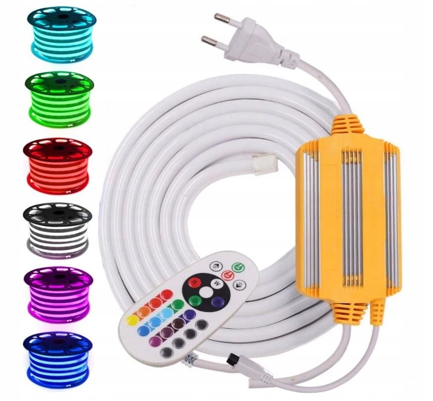 Przedmiotem aukcji jest zestaw 40m wtyczka ze stabilizatorem i pilotem taśmy NEONU led SMD 2835 na 230V RGB taśma zmienia kolor łączy ona w sobie energooszczędność, efektowny wygląd i solidne wykonanie . SMD 2835 to nowoczesne i efektywne diody LED umieszczone w silikonowym elastycznym "pancerzu" to bezpieczeństwo przed wilgocią i pozwala na montowanie w każdym miejscu w mieszkaniu, pokoju, kuchni czy w łazience jak również na zewnątrz IP67!